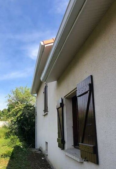 L’objectif est atteint : une charpente protégée, une meilleure isolation thermique, plus besoin d’entretenir les boiseries extérieures (grâce à l’habillage de planches de rives et du lambris en pvc, des descentes en aluminium). Ces travaux apportent clarté à cette maison qui semble plus moderne.