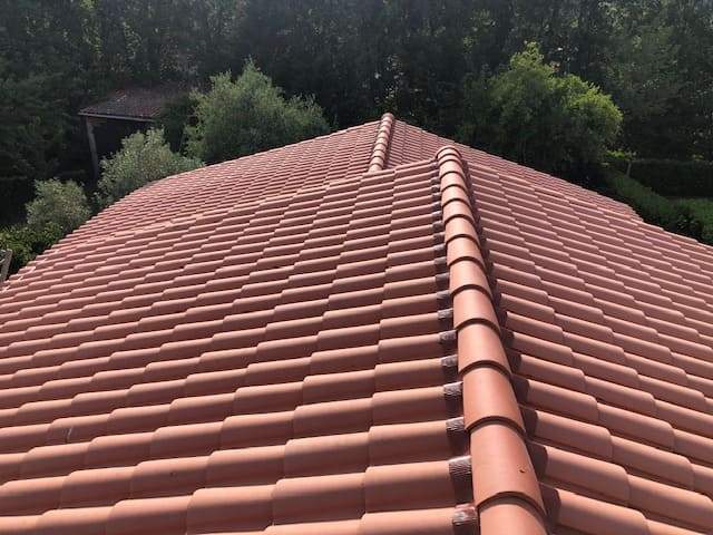 - la rénovation complète de la couverture est effectuée avec le remplacement de l’ensemble des tuiles, du faîtage et des rives